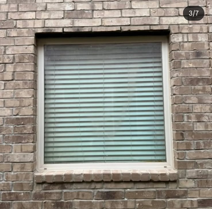 A standard window with outdated framing and no privacy features.